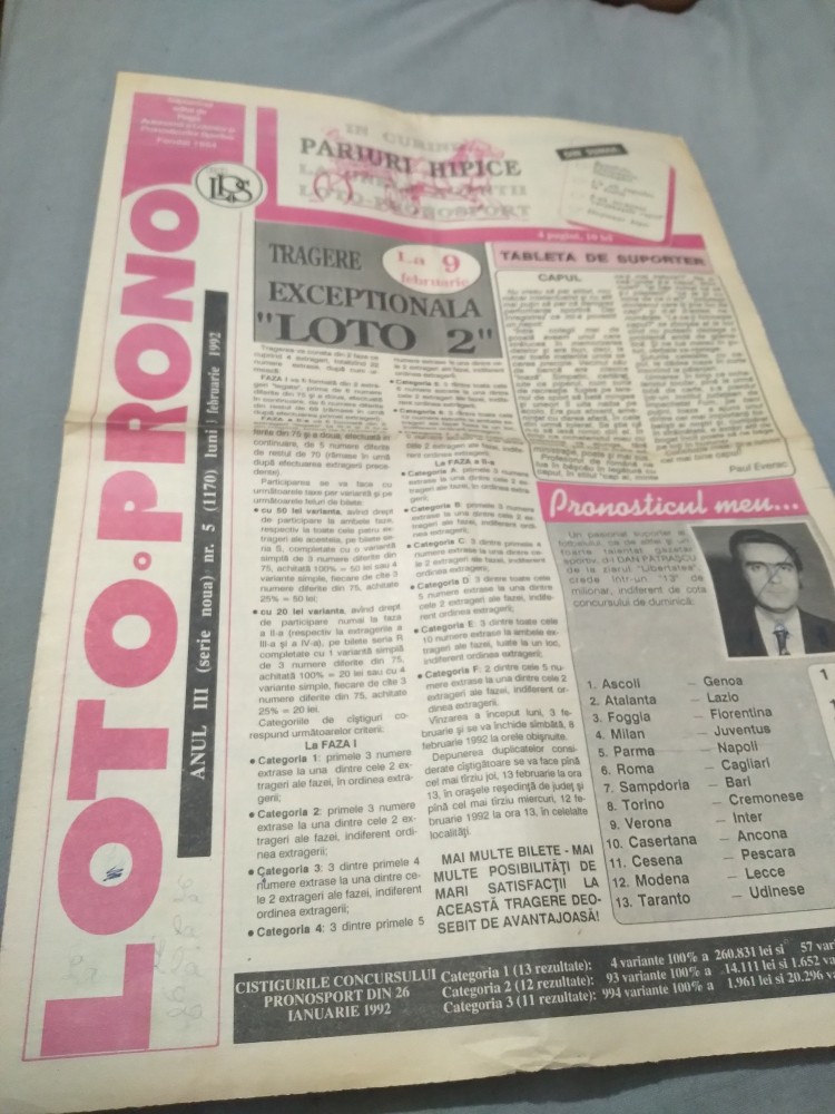 ZIAR LOTO-PRONO NR, 5 3 FEBROARIE 1992