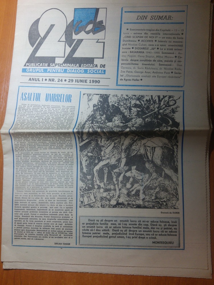 ziarul "22" din 29 iunie 1990-articol despre mineriada,reactiile internationale