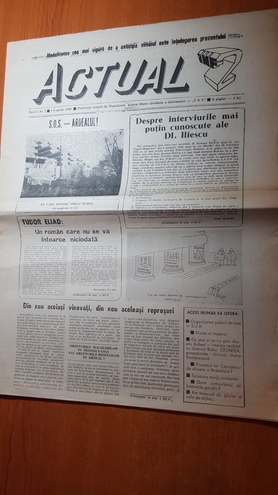 ziarul actual 3-9 aprilie 1990- anul 1,nr. 2 -interviurile lui iliescu