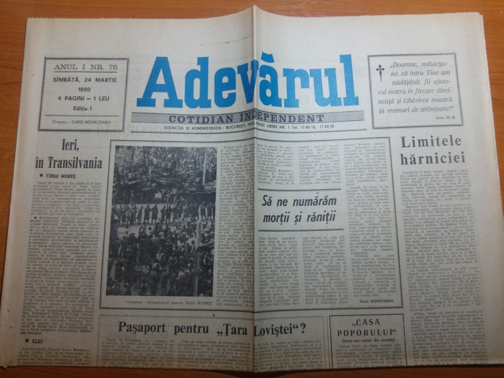 ziarul adevarul 24 martie 1990-art "sa ne numaram mortii si ranitii" targu mures