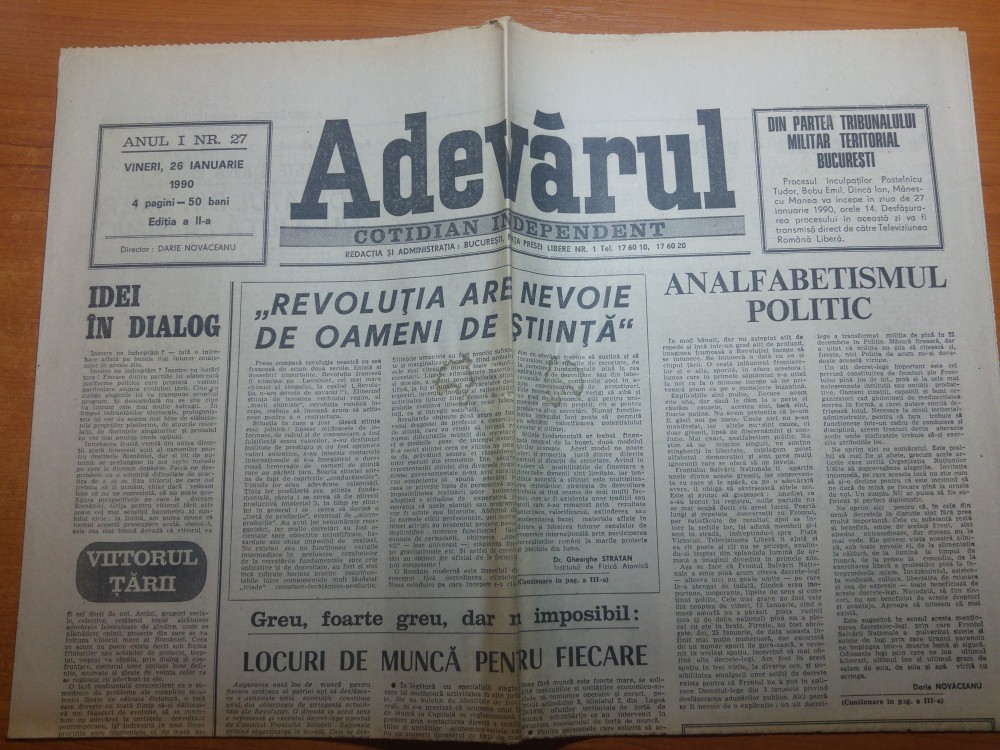 ziarul adevarul 26 ianuarie 1990-art."revolutia are nevoie de oameni de stiinta"