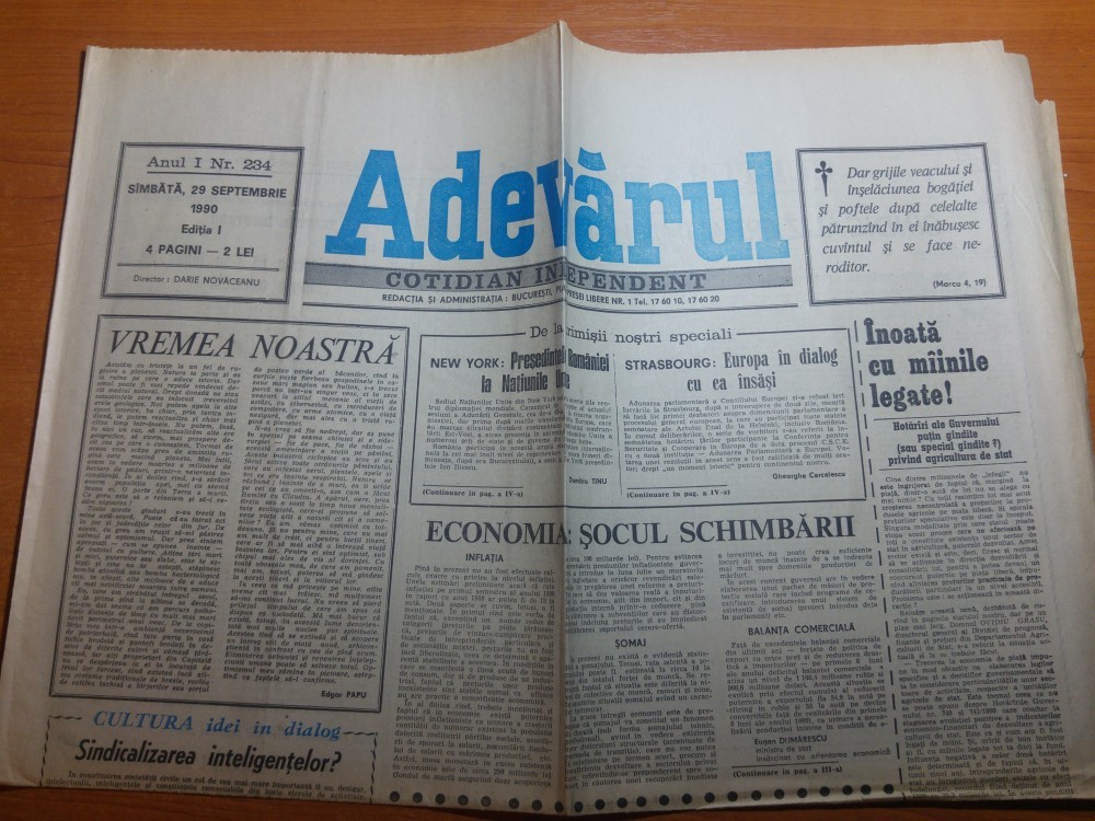ziarul adevarul 29 septembrie 1990