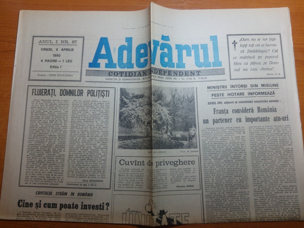 ziarul adevarul 6 aprilie 1990-art."xenofobiaia-boala a primitivismului politic"