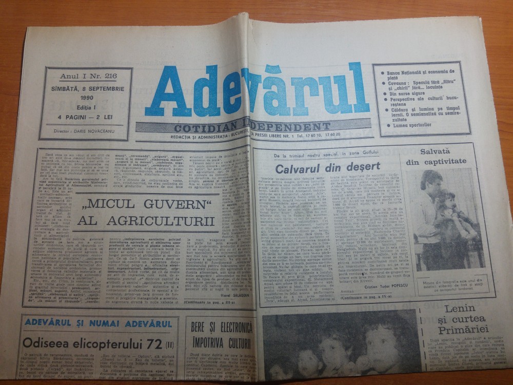 ziarul adevarul 8 septembrie 1990-art. despre razboiul din golf