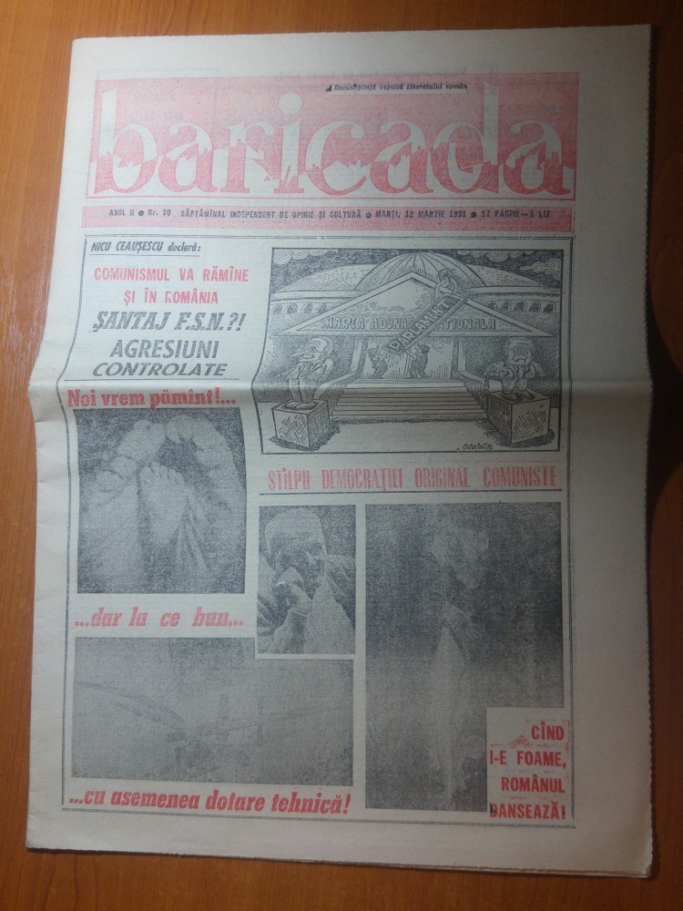 ziarul baricada 12 martie 1991-nicu ceausescu-comunismul va ramane in romania