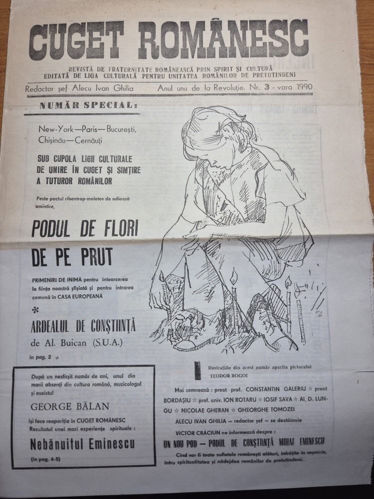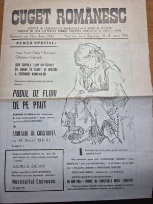 ziarul cuget romanesc - nr. 3 vara 1990 - podul de flori de peste prut, articolul nebanuitul eminescu