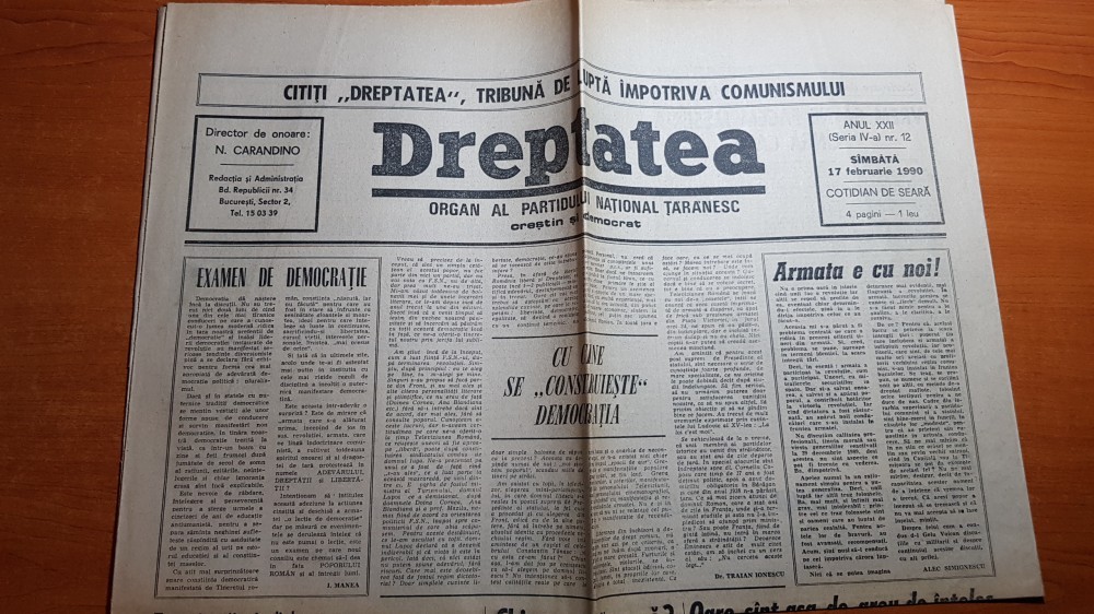 ziarul dreptatea 17 februarie 1990-articolul "cu cine se condtuieste democratia"