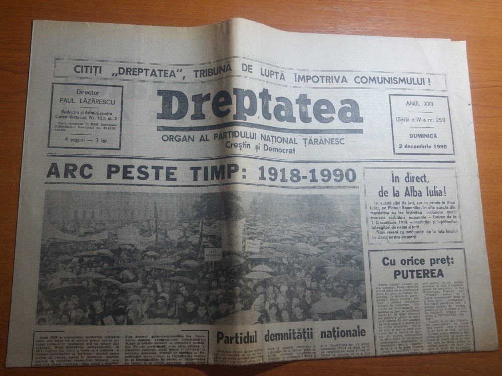 ziarul dreptatea 2 decembrie 1990--art. despre marea unire de la 1918