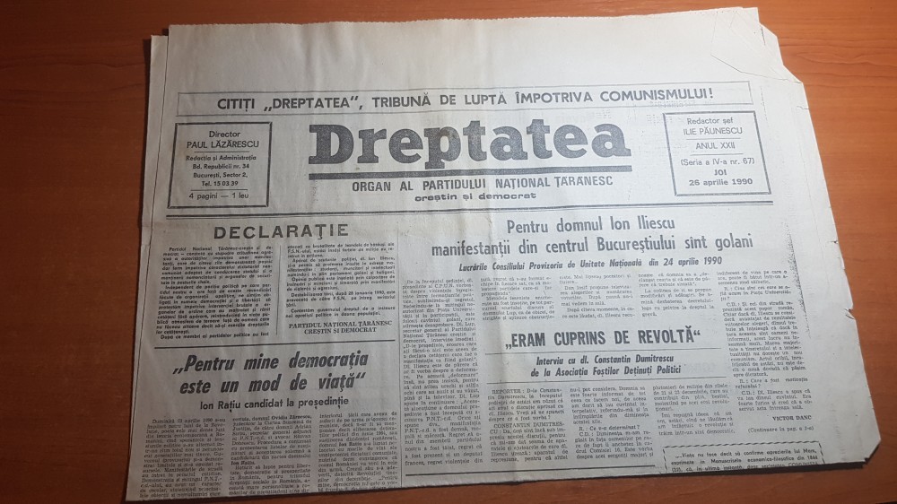 ziarul dreptatea 26 aprilie 1990-art. tinerii demonstranti nu sunt huligani