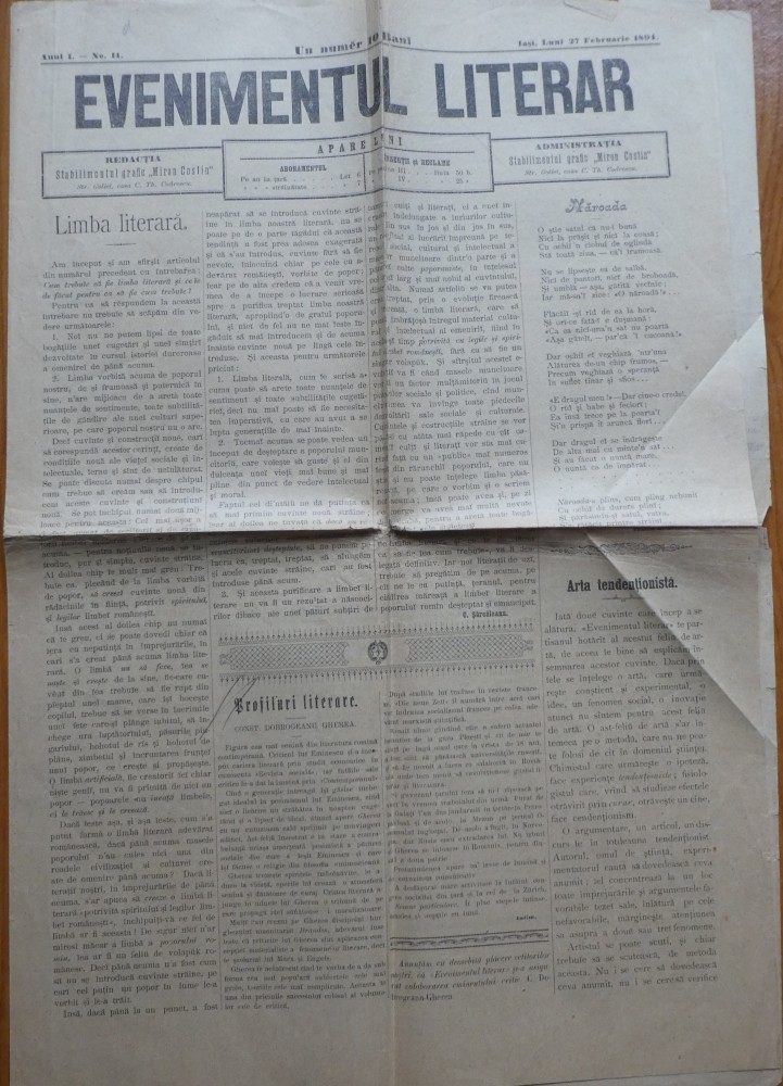 Ziarul Evenimentul literar , an 1 , nr. 11 , Iasi , 1894