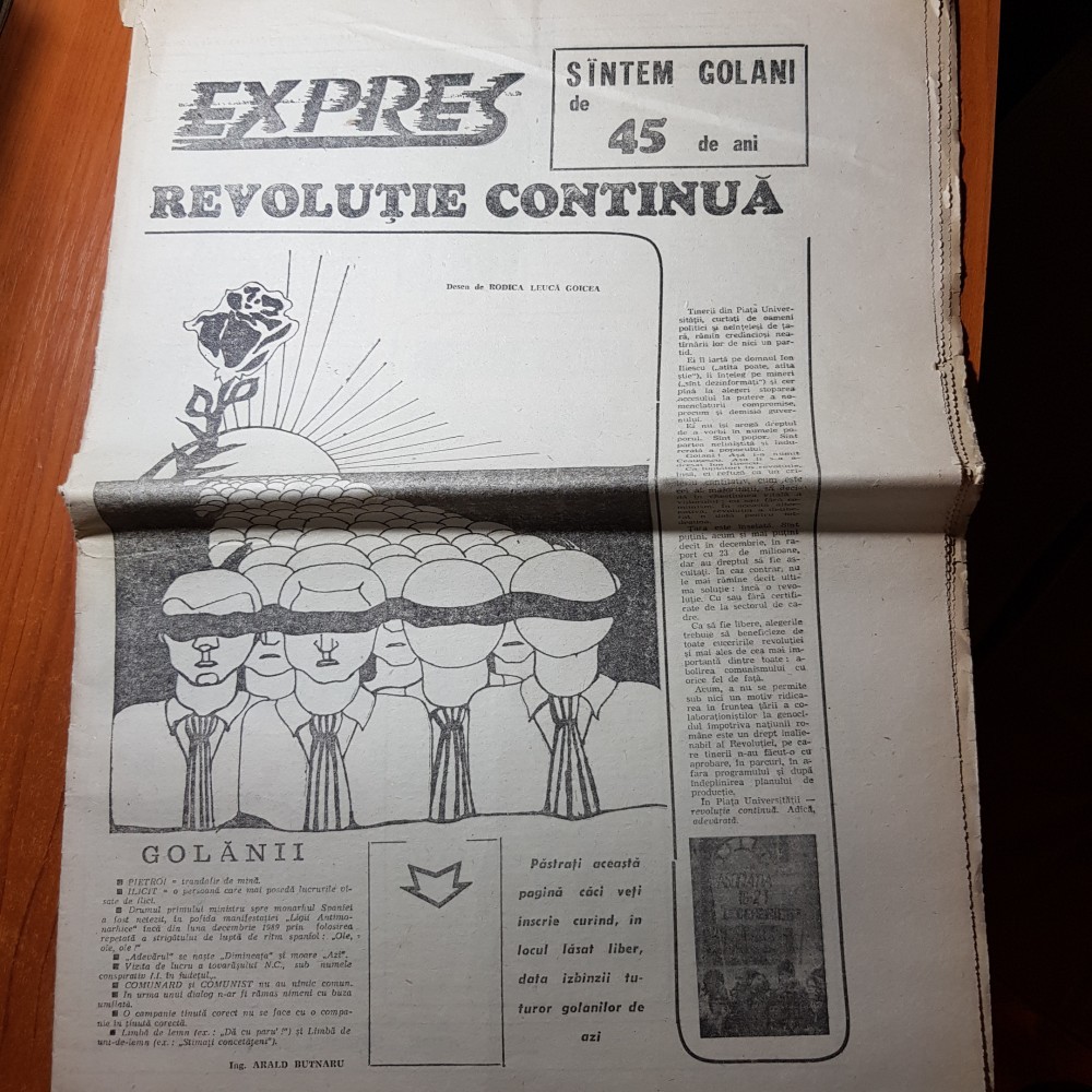 ziarul expres mai 1990-art. revolutia continua,mare demonstratie la universitate