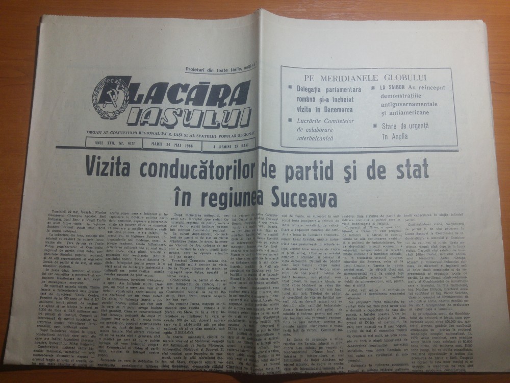 ziarul flacara iasului 24 mai 1966- vizita lui ceausescu in regiunea suceava