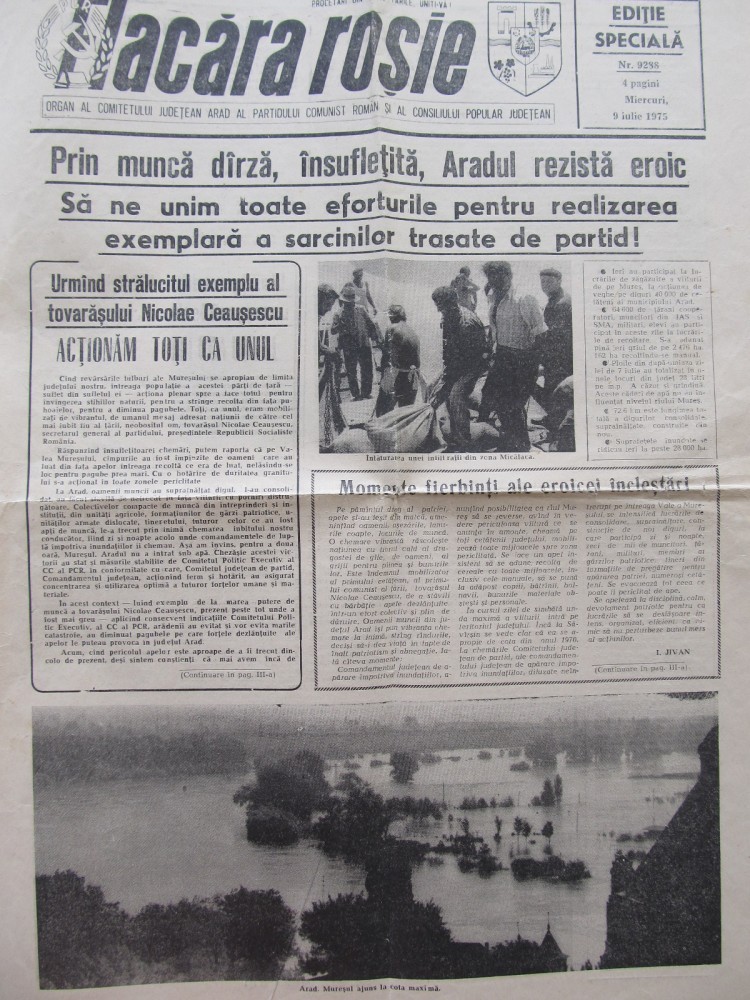 Ziarul Flacara Rosie Arad /9.07.75 - Editie speciala INUNDATIE COTA MAXIMA