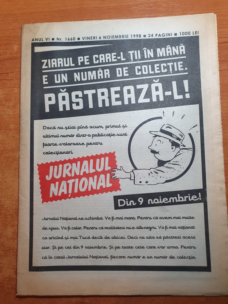 ziarul jurnalul national 6 noiembrie 1998-art mutu,ionut lupescu,ilie dumitrescu