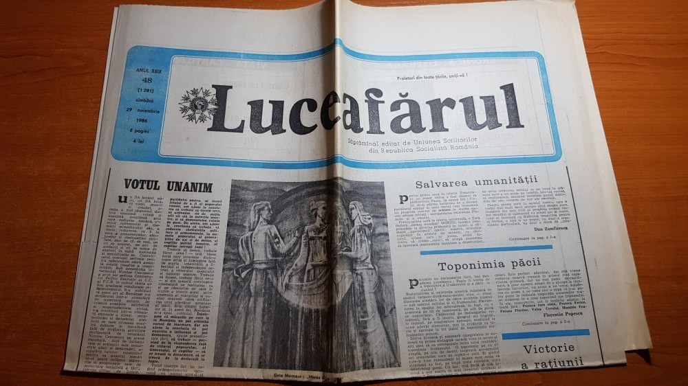 ziarul luceafarul 29 noiembrie 1986-articol despre marea unire de la 1918