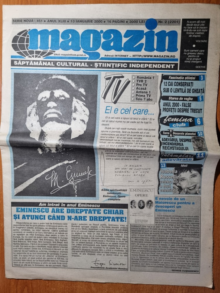ziarul magazin 13 ianuarie 2000-art johnny deep, isabella rossellini