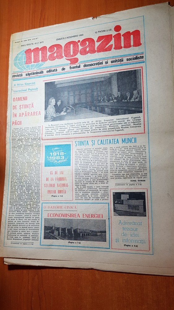 ziarul magazin 5 noiembrie 1983 - 65 de ani de la faurirea statului national