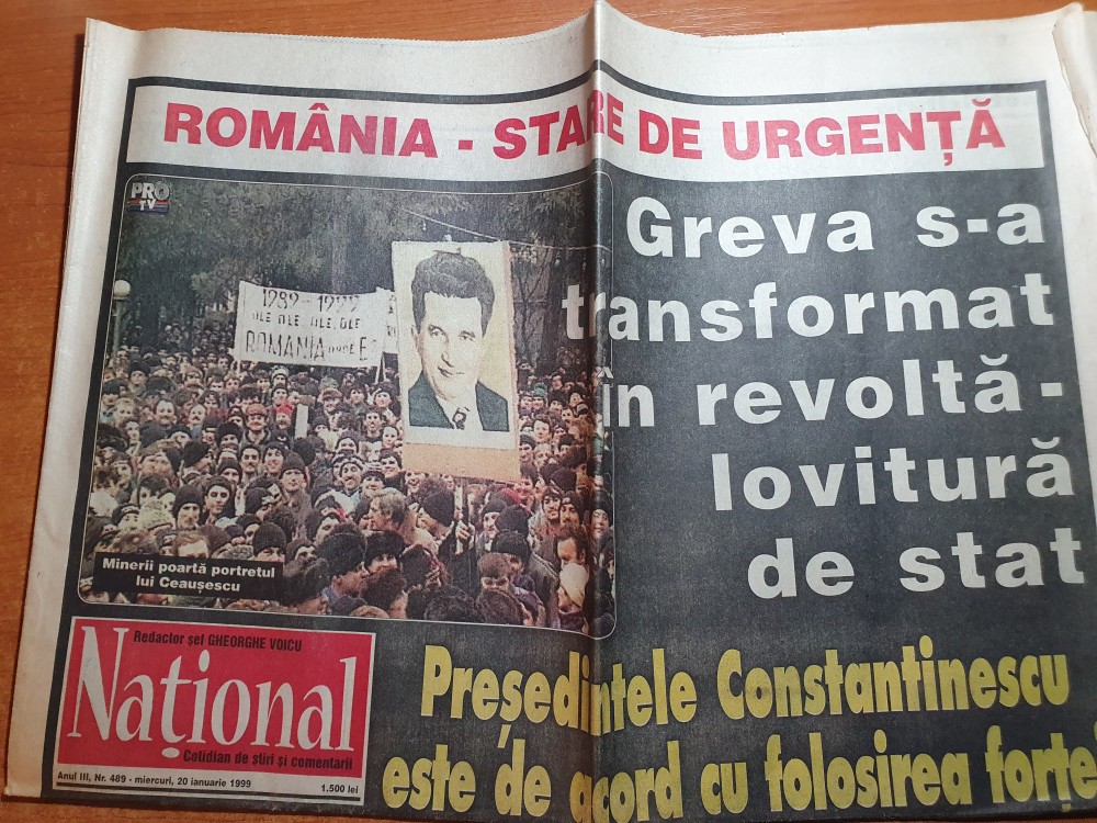 ziarul national 20 ianuarie 1999-art greva minerilor din valea jiului