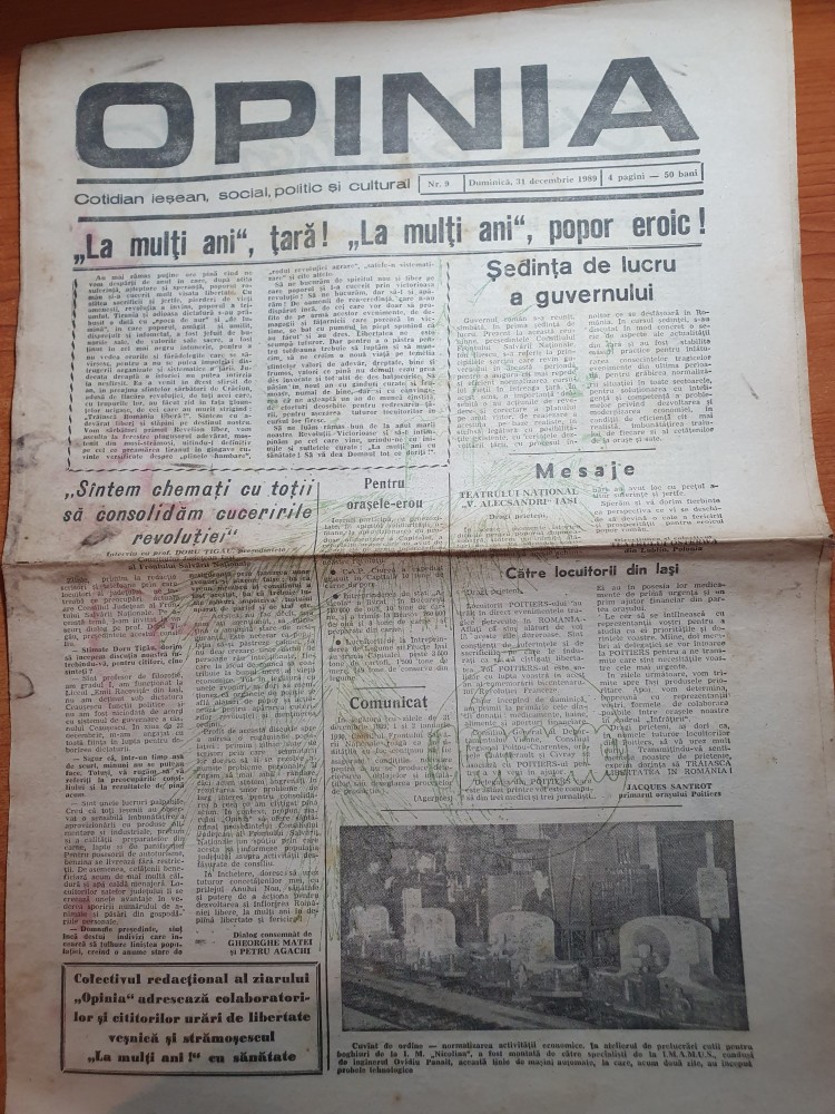 ziarul opinia 31 decembrie 1989 -revolutia - la multi ani popor eroic