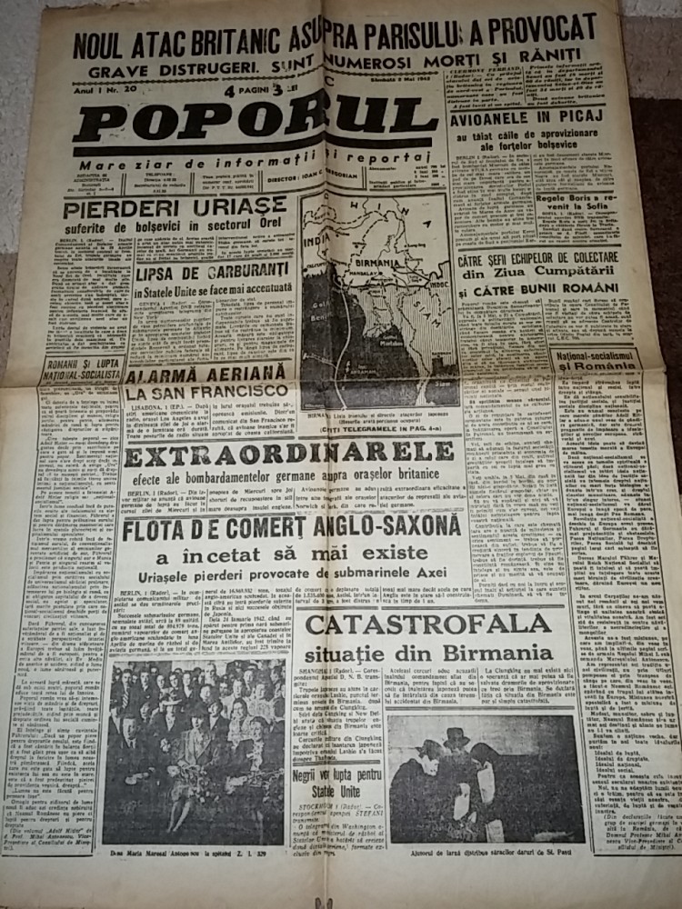 ziarul poporul 2 mai 1942-pierderiuriase suferite de bolsevici,stiri de pe front
