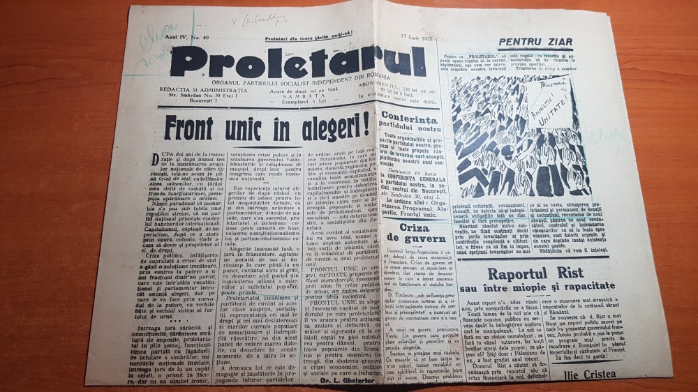 ziarul proletarul 15 iunie 1932-art.hitlerismul in romania,zelea codreanu,hitler