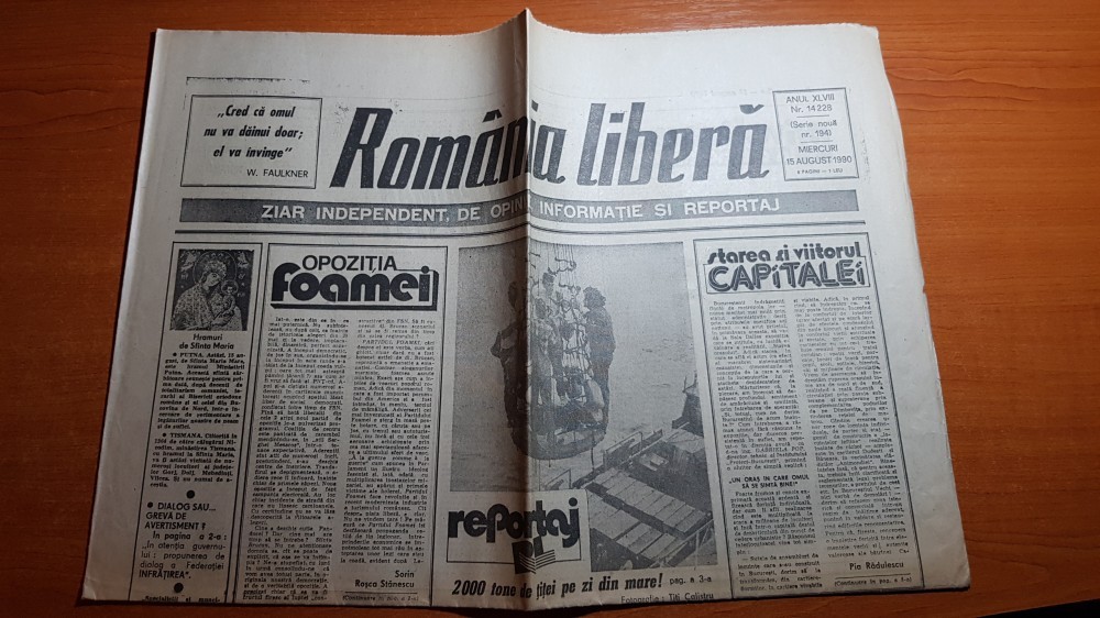 ziarul romania libera 15 august 1990-pericol de faliment la tractorul brasov