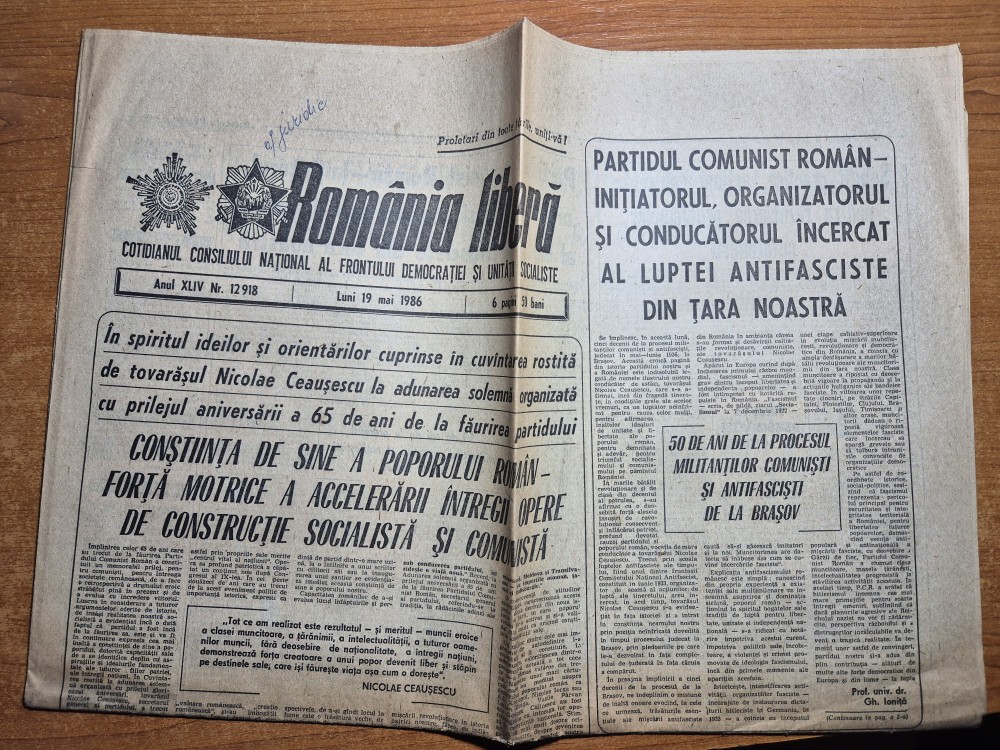 ziarul romania libera 19 mai 1986 - articol vaslui ,satu mare