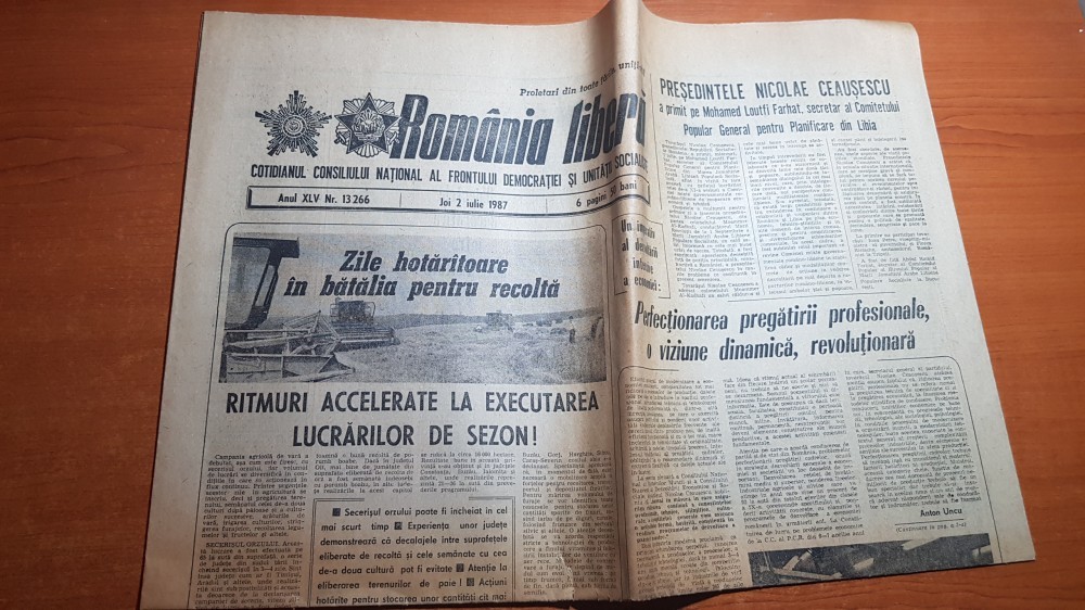 ziarul romania libera 2 iulie 1987-art. despre canalul siret-baragan
