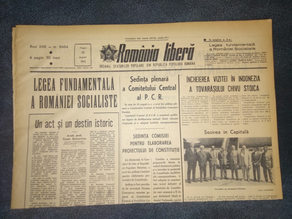 ZIARUL ROMANIA LIBERA 20 AUGUST 1965