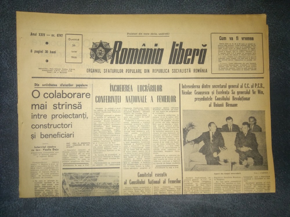 ZIARUL ROMANIA LIBERA 26 IUNIE 1966