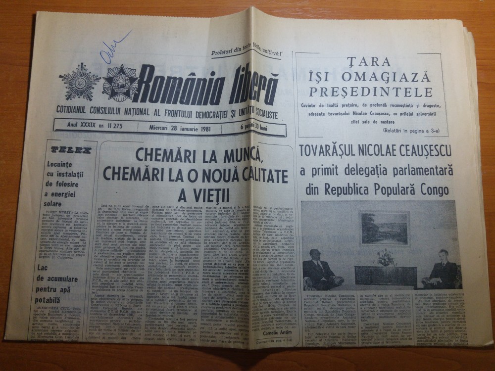 ziarul romania libera 28 ianuarie 1981-tara isi omagiaza presedintele