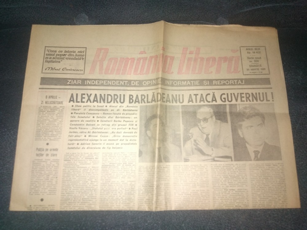 ZIARUL ROMANIA LIBERA 30 MARTIE 1991 ALEXANDRU BARLODEANU ATACA GUVERNUL