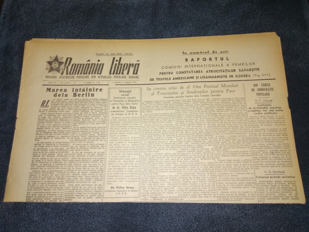 ZIARUL ROMANIA LIBERA 5 AUGUST 1951 RAPORT COREEA
