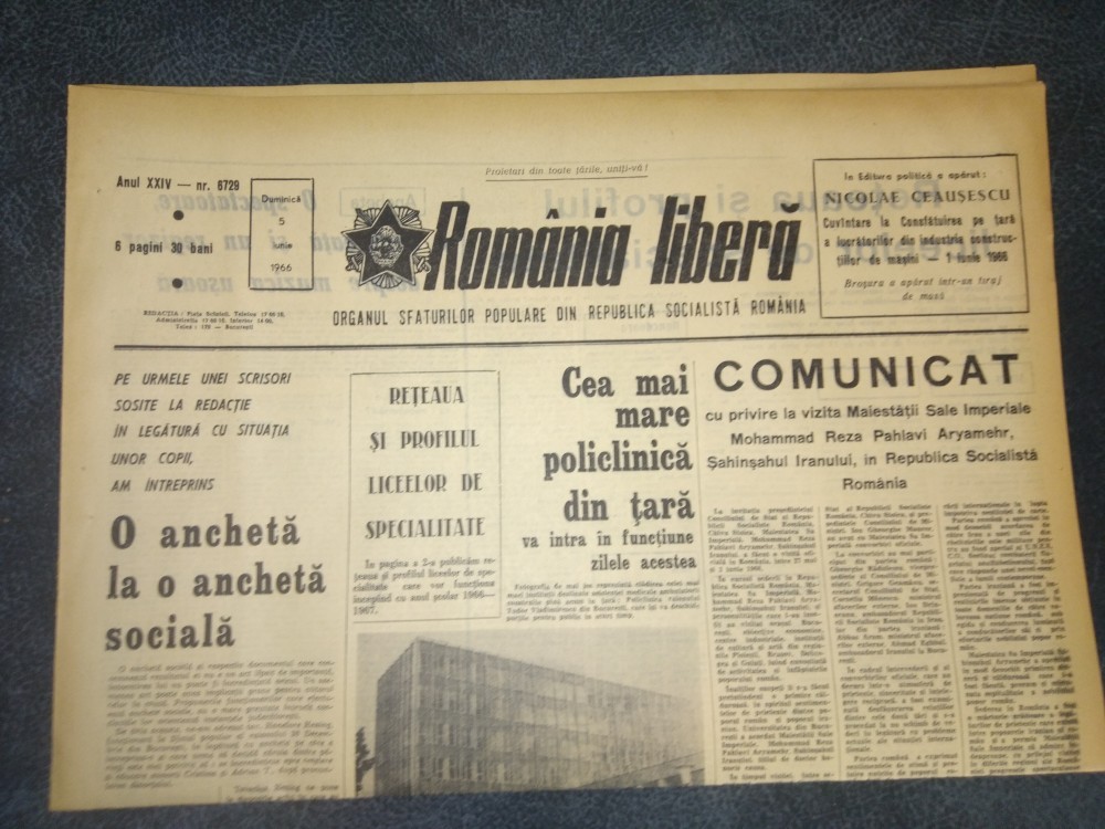 ZIARUL ROMANIA LIBERA 5 IUNIE 1966 VIZITA SAHULUI IRANULUI