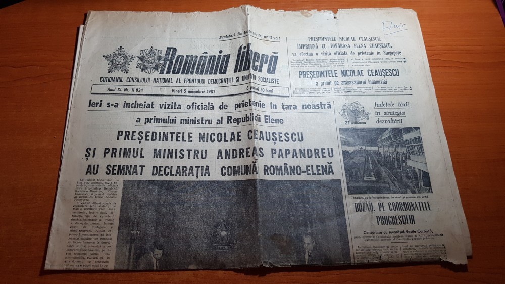 ziarul romania libera 5 noiembrie 1982-articol despre jud. buzau