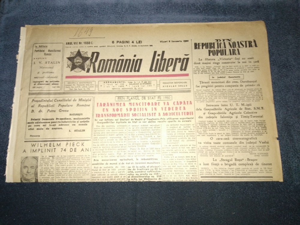 ZIARUL ROMANIA LIBERA 6 IANUARIE 1950