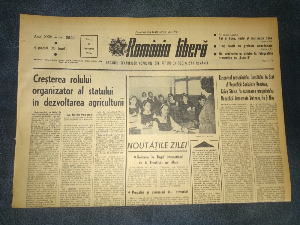 ZIARUL ROMANIA LIBERA 8 FEBRUARIE 1966 STATIA LUNA A ASELENIZAT