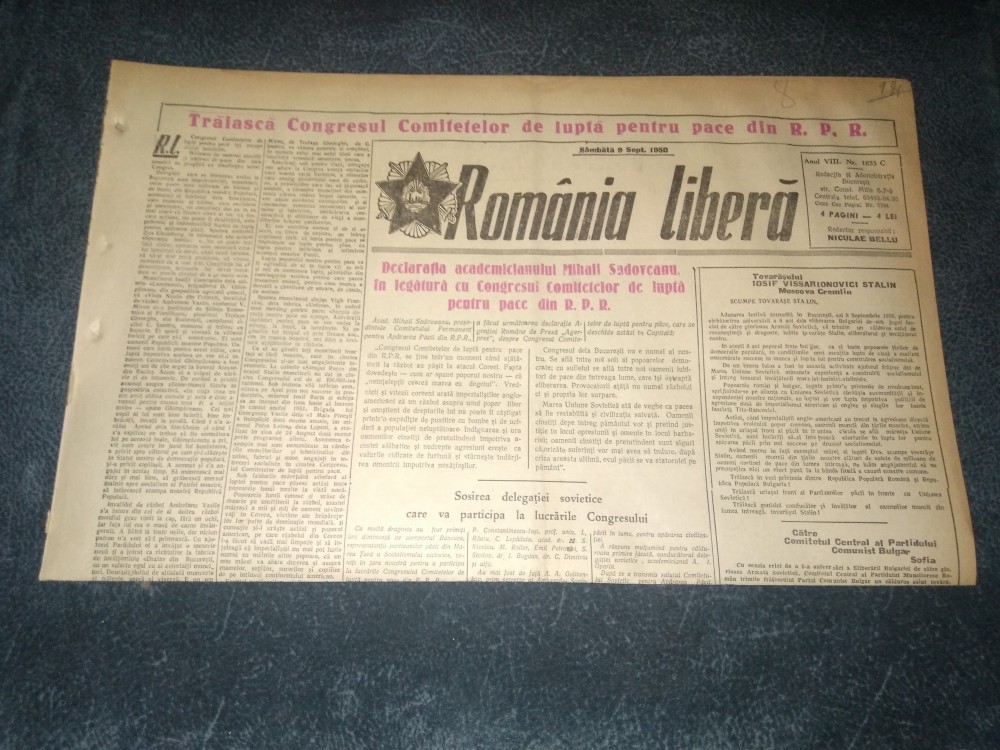 ZIARUL ROMANIA LIBERA 9 SEPTEMBRIE 1950