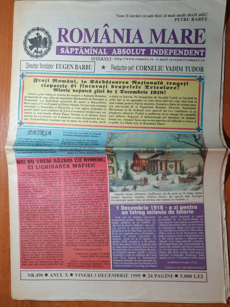 ziarul romania mare 3 decembrie 1999- 81 de ani de la marea unire de la 1918