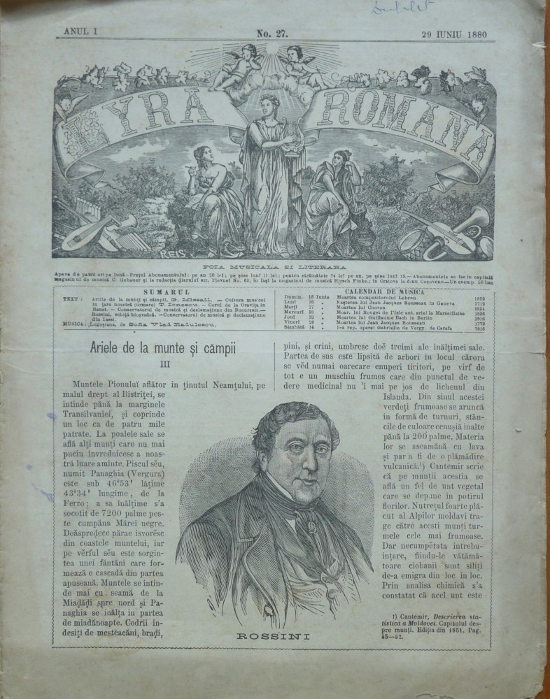 Ziarul saptamanal Lyra Romana , an 1 , nr. 27 , 1880