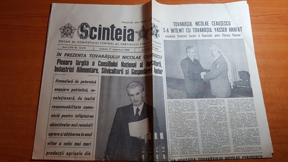ziarul scanteia 17 decembrie 1988- intalnirea dintre ceausescu si yasser arafat