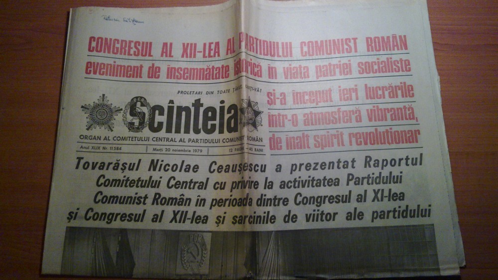 ziarul scanteia 20 noiembrie 1979 (congresul al 12-lea al partidului comunist )