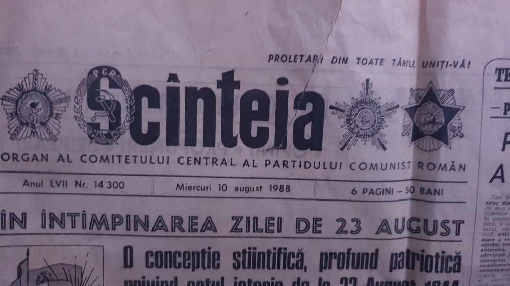 Ziarul Scanteia nr 14300, 10 august 1988, 6 pagini format mare