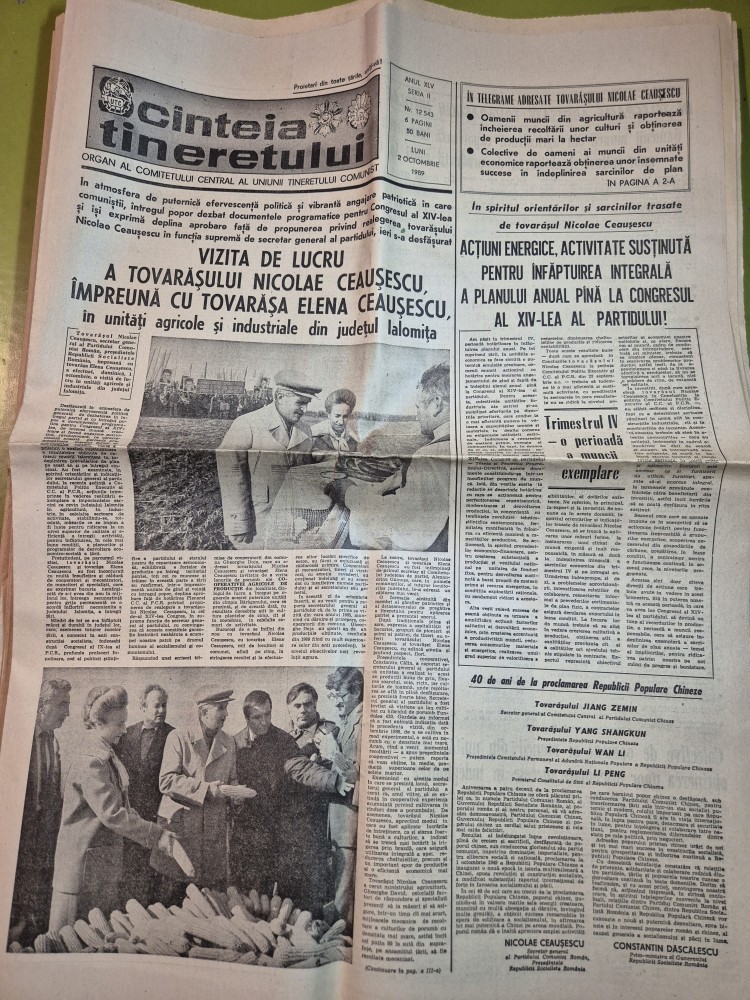 ziarul scanteia tineretului 2 octombrie 1989 - vizita lui ceausescu in judetul ialomita