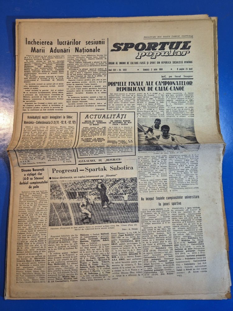 ziarul sportul popular 2 iulie 1966 - articolul popas argesan,progresul bucuresti - spartak subotica