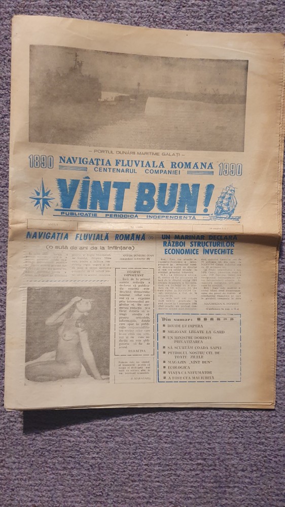 Ziarul Vant Bun, Navigatia Fluviala Romana, nr 5/1990, 16 pagini