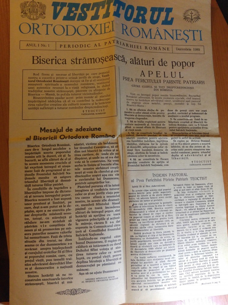 ziarul vestitorul ortodoxiei romanesti anul 1,nr. 1 decembrie 1989 ( revolutia )