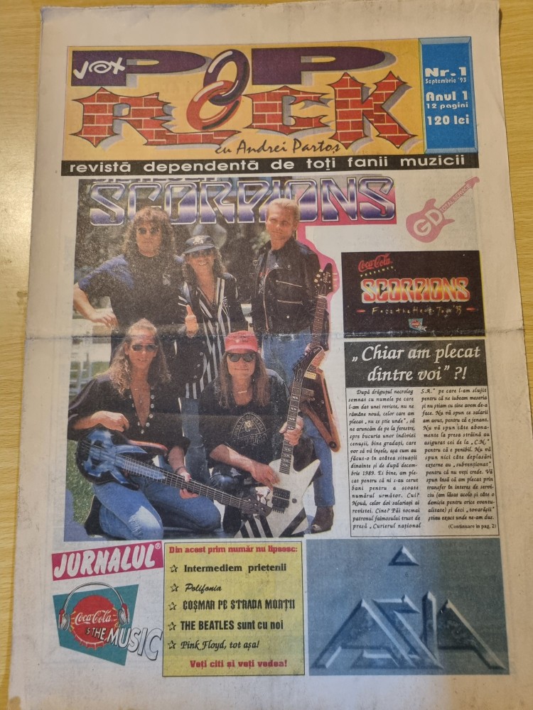 ziarul vox pop rock - septembrie 1993 - anul 1,nr. 1 - prima aparitie a ziarului