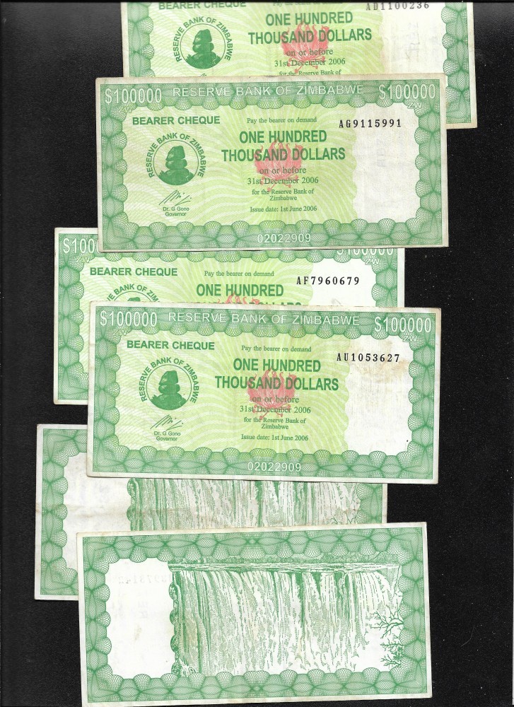 Zimbabwe 100000 100.000 dollars 2006 F - VF bearer cheque pret pe bucata