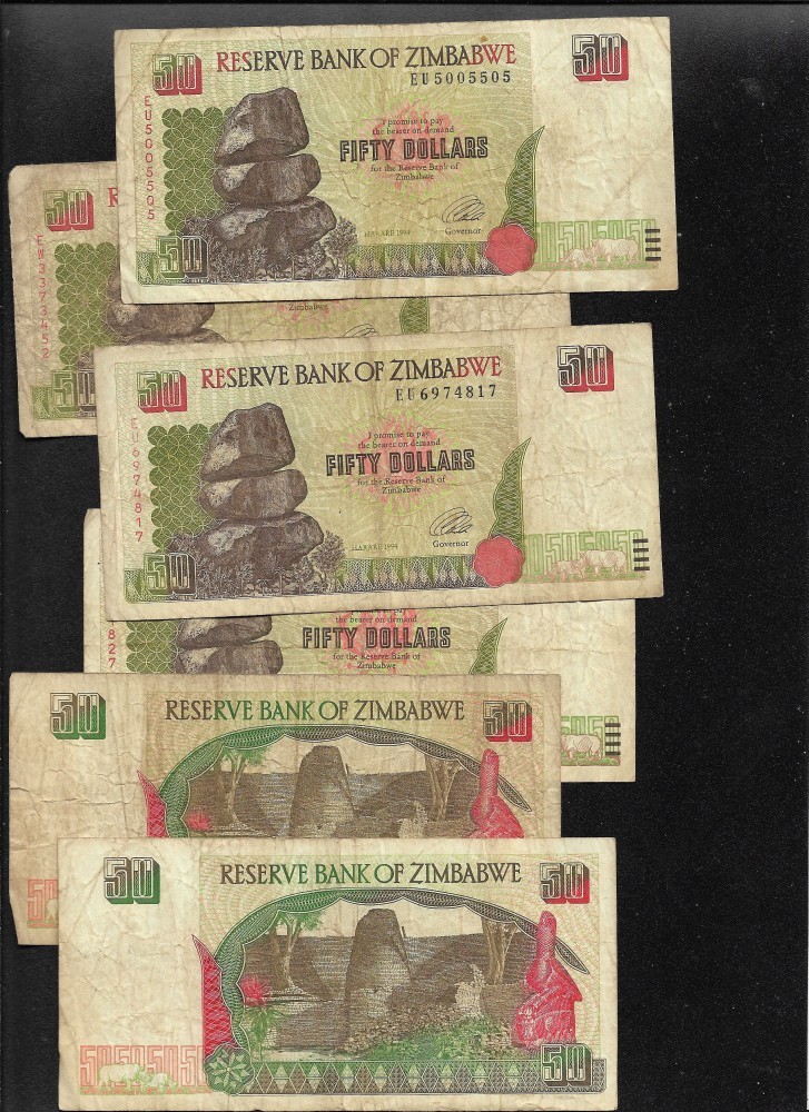 Zimbabwe 50 dollars 1994 F-VF pret pe bucata